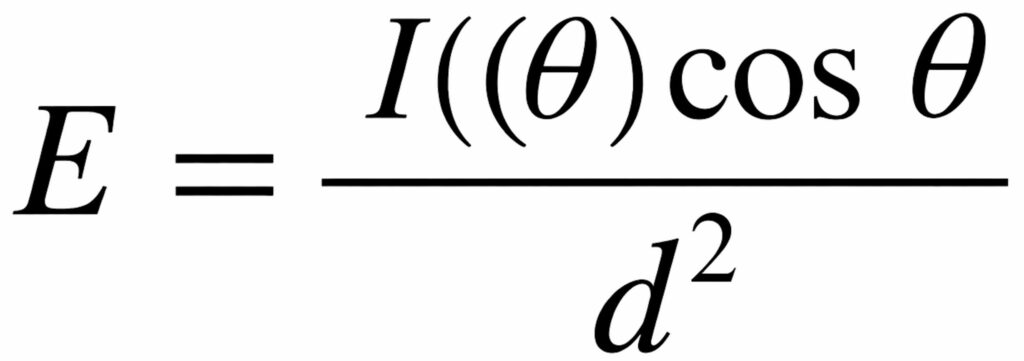 - Cálculo luminotécnico pelo método ponto a ponto, que é uma metodologia com base na Lei de Lambert: “ A intensidade da luz emitida decresce exponencialmente à medida que a espessura do meio absorvente aumenta aritmeticamente “. Devido a isso, esse método também é conhecido como método da intensidade luminosa.